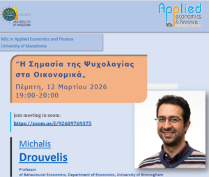 Η Επιτροπή Προγράμματος Σπουδών (Ε.Π.Σ.) του Διατμηματικού Προγράμματος Μεταπτυχιακών Σπουδών (Δ.Π.Μ.Σ.) στην Οικονομική Επιστήμη στην υπ’ αριθ.1/20.09.2024 συνεδρίασή της αποφασίζει τον ορισμό Διευθυντή στο Διατμηματικό Πρόγραμμα Μεταπτυχιακών Σπουδών «Οικονομική Επιστήμη (Master in Economics)» του Τμήματος Οικονομικών Επιστημών της Σχολής Οικονομικών και Περιφερειακών Σπουδών του Πανεπιστημίου Μακεδονίας, του Τμήματος Οργάνωσης και Διοίκησης Επιχειρήσεων και του Τμήματος Λογιστικής και Χρηματοοικονομικής της Σχολής Επιστημών Διοίκησης Επιχειρήσεων του Πανεπιστημίου Μακεδονίας, για δύο ακαδημαϊκά έτη (01.09.2024-31.08.2026), ως ακολούθως: